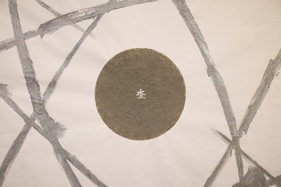 나아가, 이 작업을 통해 원자 모형이나 입자와 같은 가시적인 것과 우주 질서, 순환, 또는 에너지와 같은 비가시적인 것 사이의 경계를 탐구해 보고자 하였다. '탈락된 입자'라는 물질적 재료인 '먼지'는 모든 존재가 결국 시간 속에서 변화하고 소멸하여 자연으로 돌아가는 보이지 않는 순환 과정을 상징하는 매개체가 되었으며, 물질과 비물질, 유한과 무한의 경계를 넘나드는 사유를 유도해보는 촉매제가 되었다. 또한, <묘법>의 부산물, 즉 작품 제작 과정에서의 주변부 요소가 작품의 중심 재료가 되고, 과학과 철학이라는 이질적인 틀이 전시를 통해 '중첩'되며, 양각과 음각이 상호 보완적으로 제시되는 형식 등은 과연 중심과 주변이 연기(緣起)에서 명확히 분리될 수 있는 독립된 조건에 있는지, 우리가 '먼지'로 상징한 것들의 역할을 그저 폐기해야 할 대상으로 바라보고 인식의 범주 안에서 규정해온 것은 아닌지 그 가능성을 질문해 보는 것이었다.