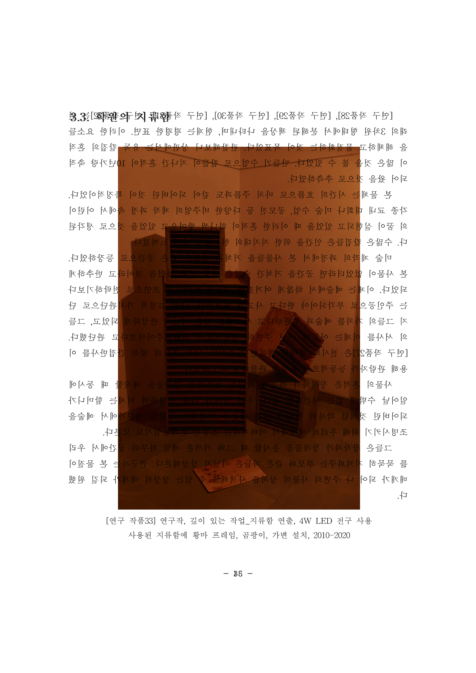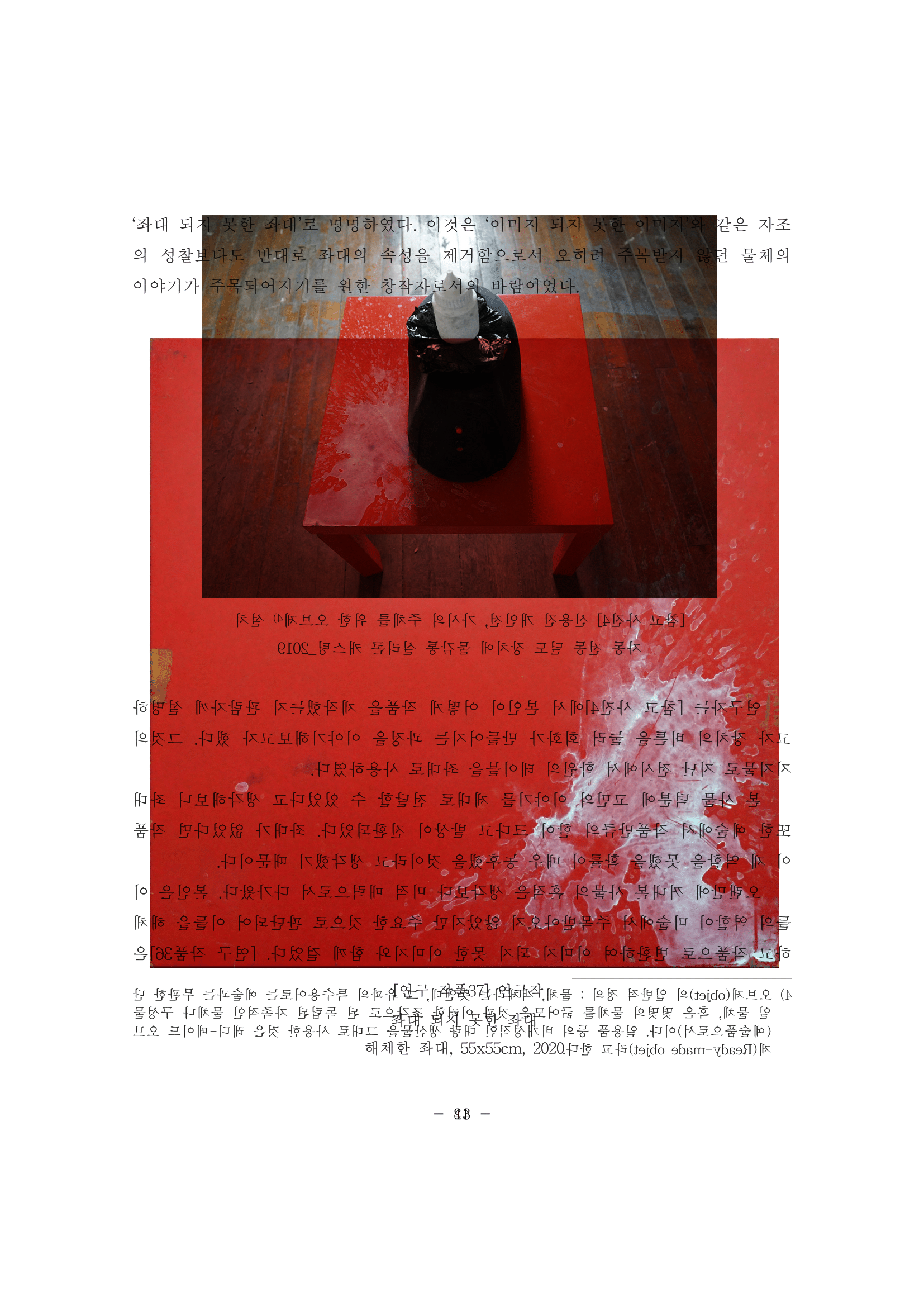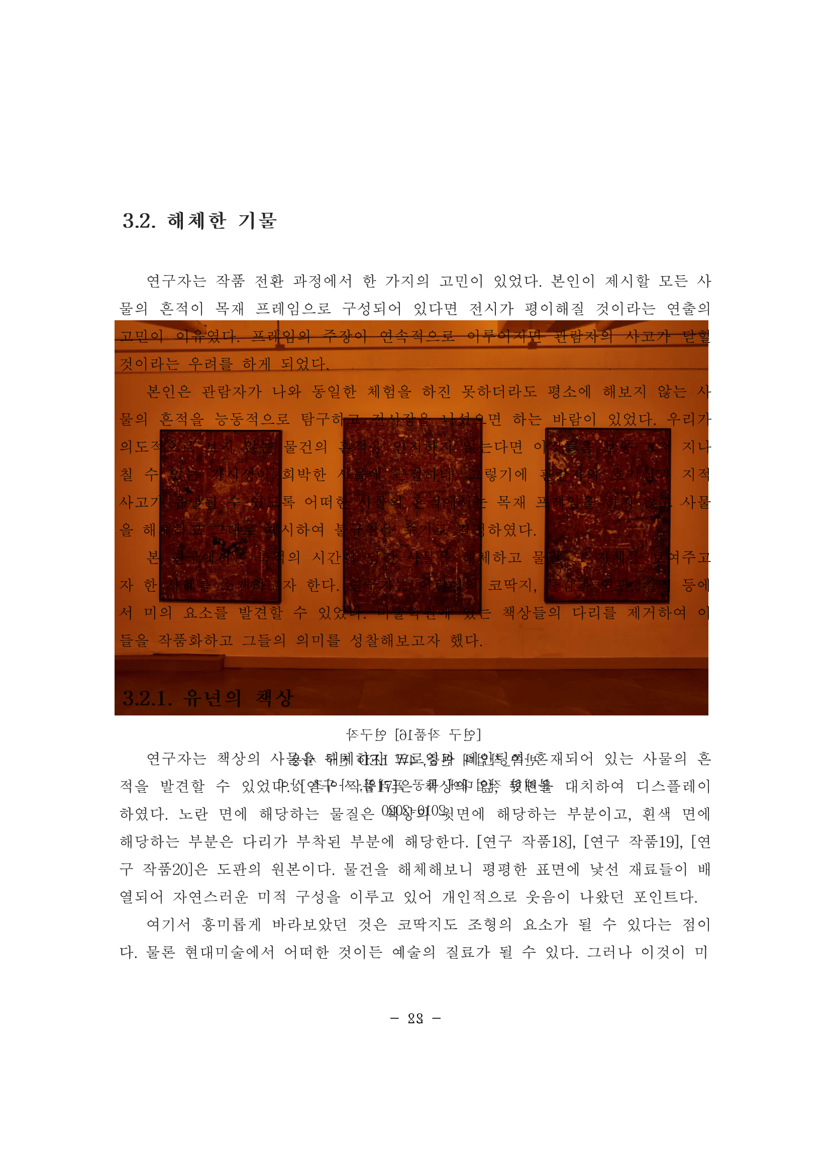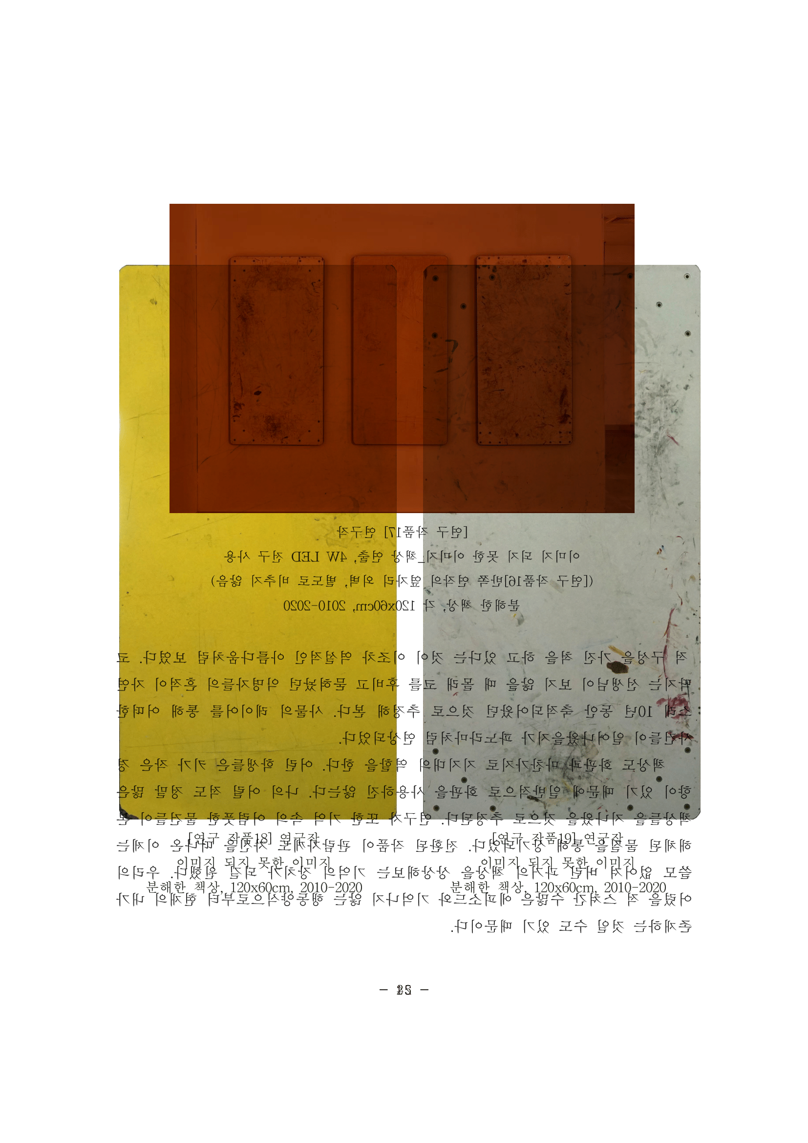 결론적으로 <이것은 논문이 아니다> 시리즈는 나의 개인적인 탈락 경험, 즉 <이미지 되지 못한 이미지>(2020), <객화>(2021), <저편의 양>(2022)처럼 일종의 쓸모없음이라고 치부되오는 것을 가치 전환을 통해 다층적인 예술적 실험, 다시 말해 새로운 차원의 쓸모로서 전환한 작업이라 할 수 있다.