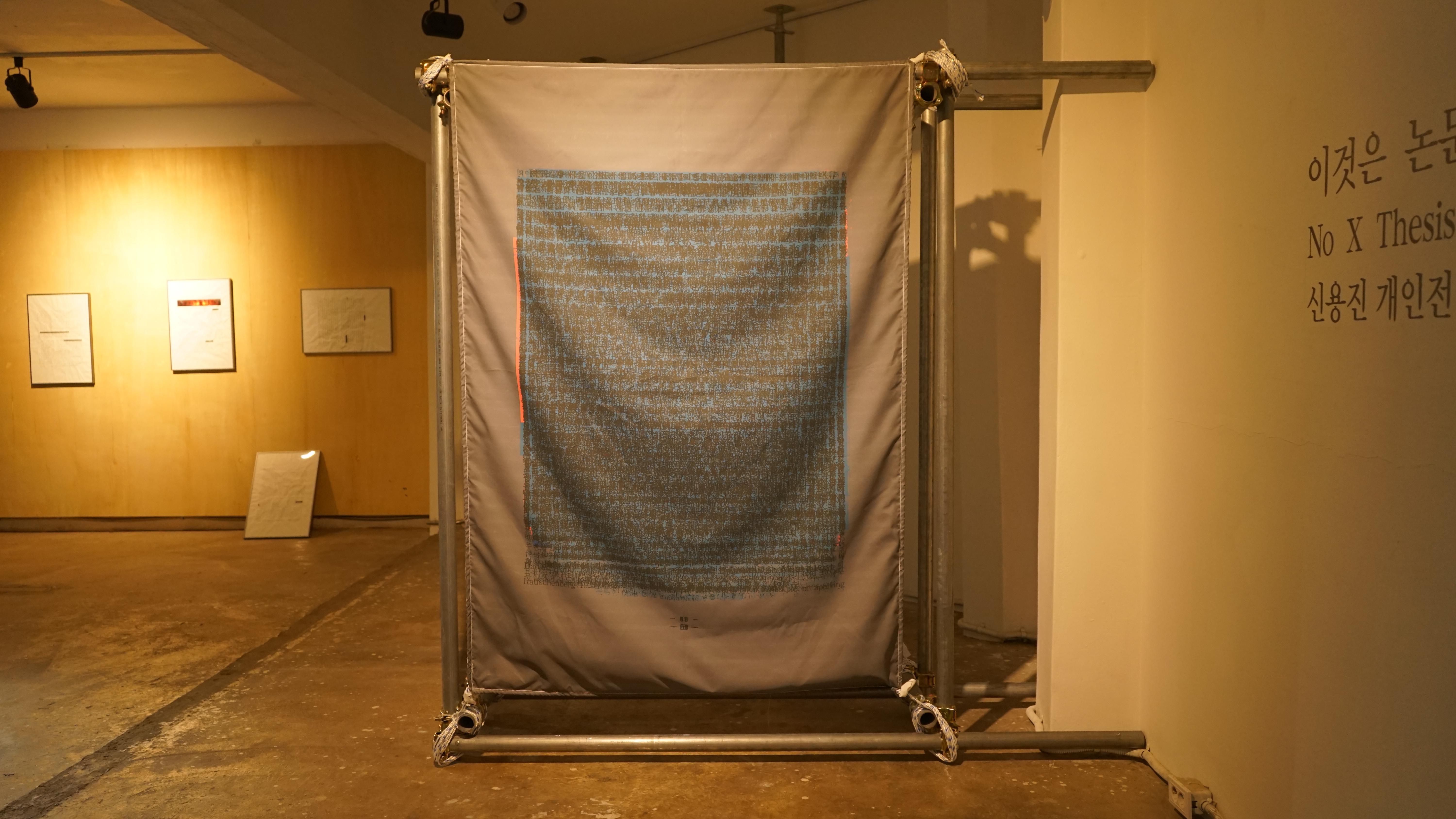 <언어의 합이다>, 180 x 127 cm, 비계 파이프에 인쇄된 현수막 설치_2024<언어의 합이다> 디테일 사진, 공간불모지_2024<이미지의 합이다>, 180 x 127 cm, 비계 파이프에 인쇄된 현수막 설치_2024<이미지의 합이다> 디테일 사진, 공간불모지_2024<국문초록의 합이다>, 180 x 127 cm, 비계 파이프에 인쇄된 현수막 설치_2024<국문초록의 합이다> 디테일 사진, 공간불모지_2024<모든 조형의 합의 닷지다>, 180 x 127 cm, 비계 파이프에 인쇄된 현수막 설치_2024<모든 조형의 합의 닷지다> 디테일 사진, 공간불모지_2024