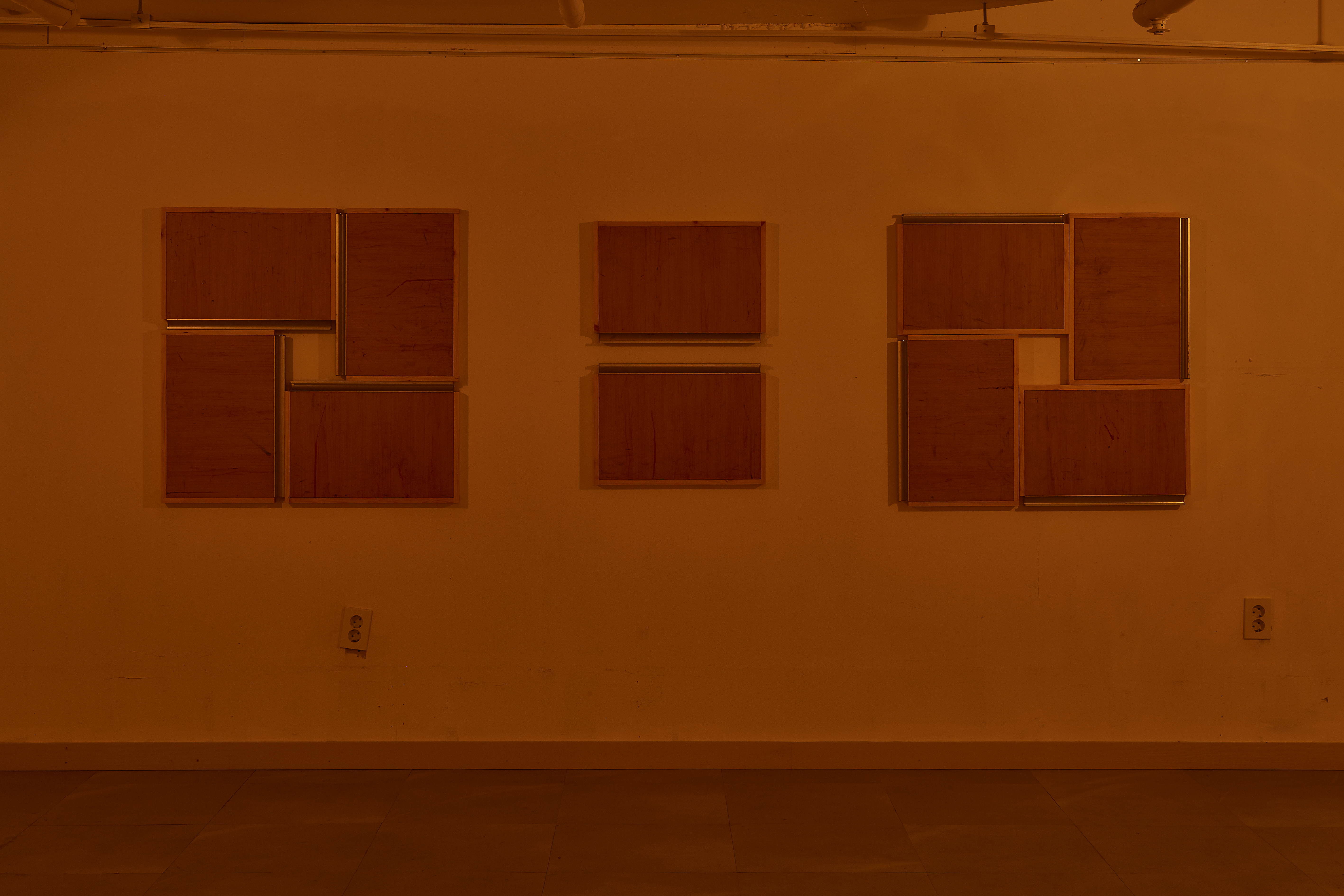 <반쪽>, 123 x 88 cm, 해체한 사용된 목수의 작업대에 나무 프레임, 스테인_2020