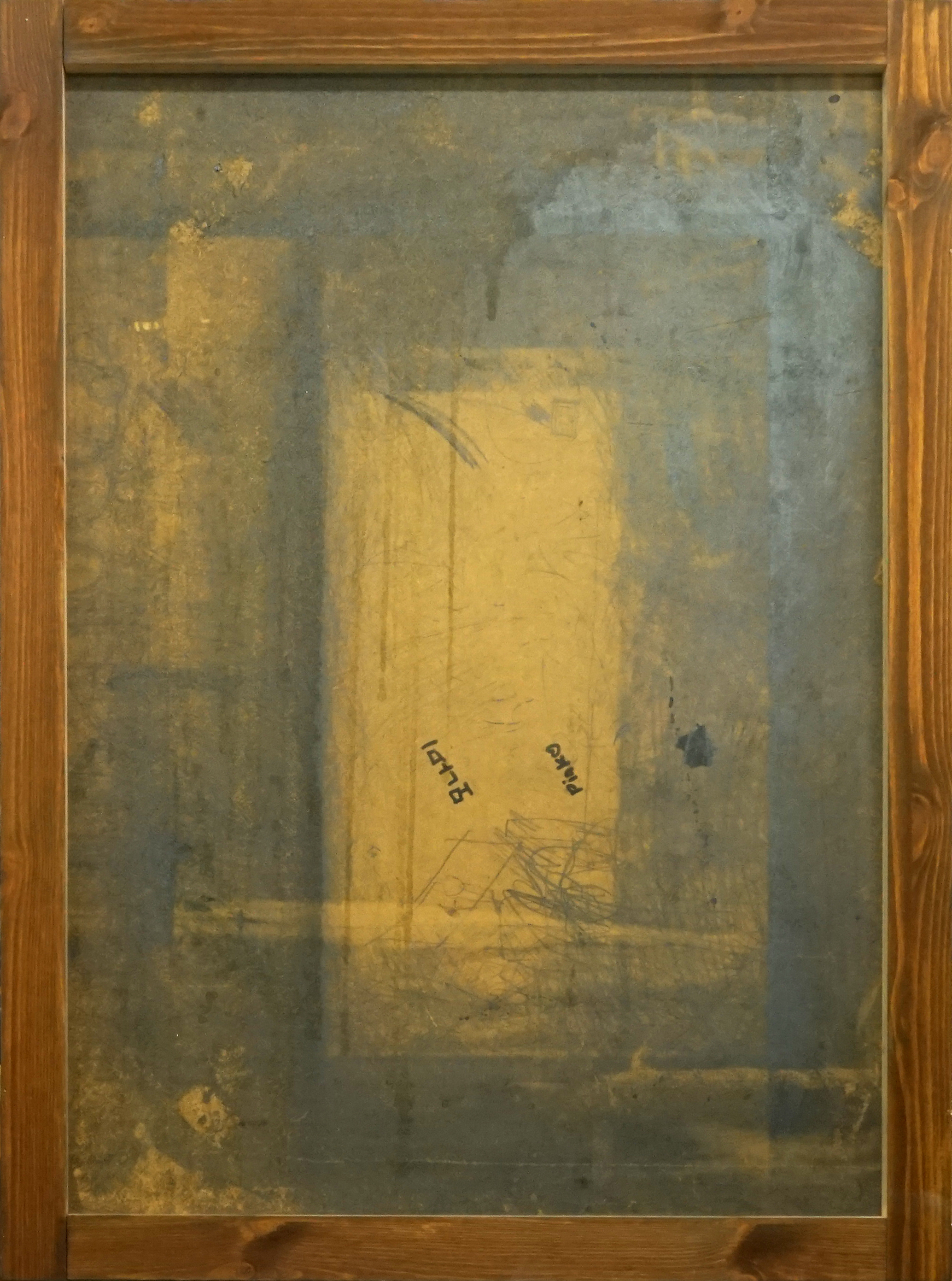 <이미지 되지 못한 이미지>, 79 x 59 cm, 익명인들에 의해 사용된 화판에 나무 프레임, 스테인_2020