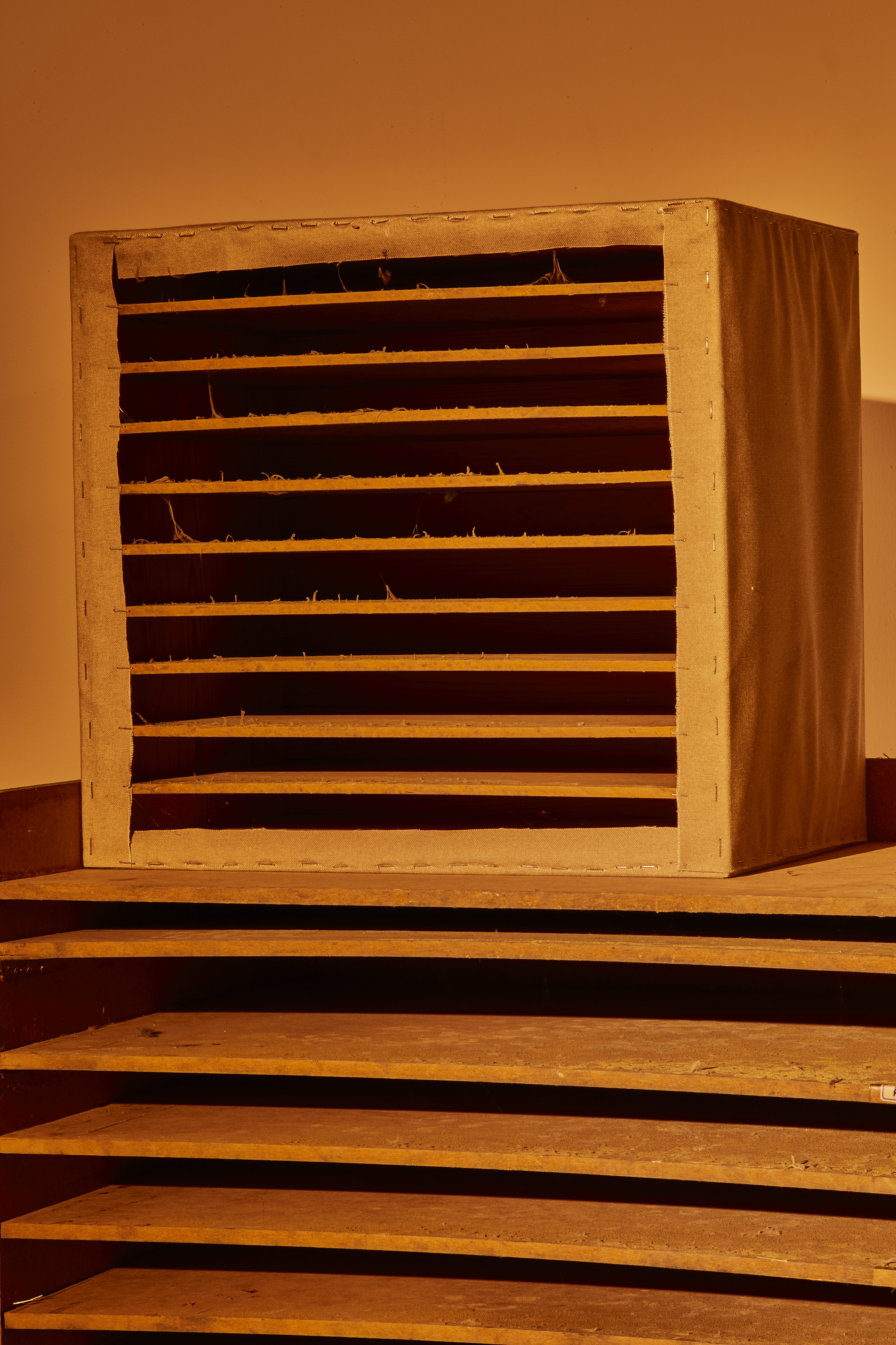 <깊이 있는 작업>, 40 x 42 x 29 cm, 거꾸로 뒤집은 사용된 지류함, 곰팡이, 세목 프레임_2020
