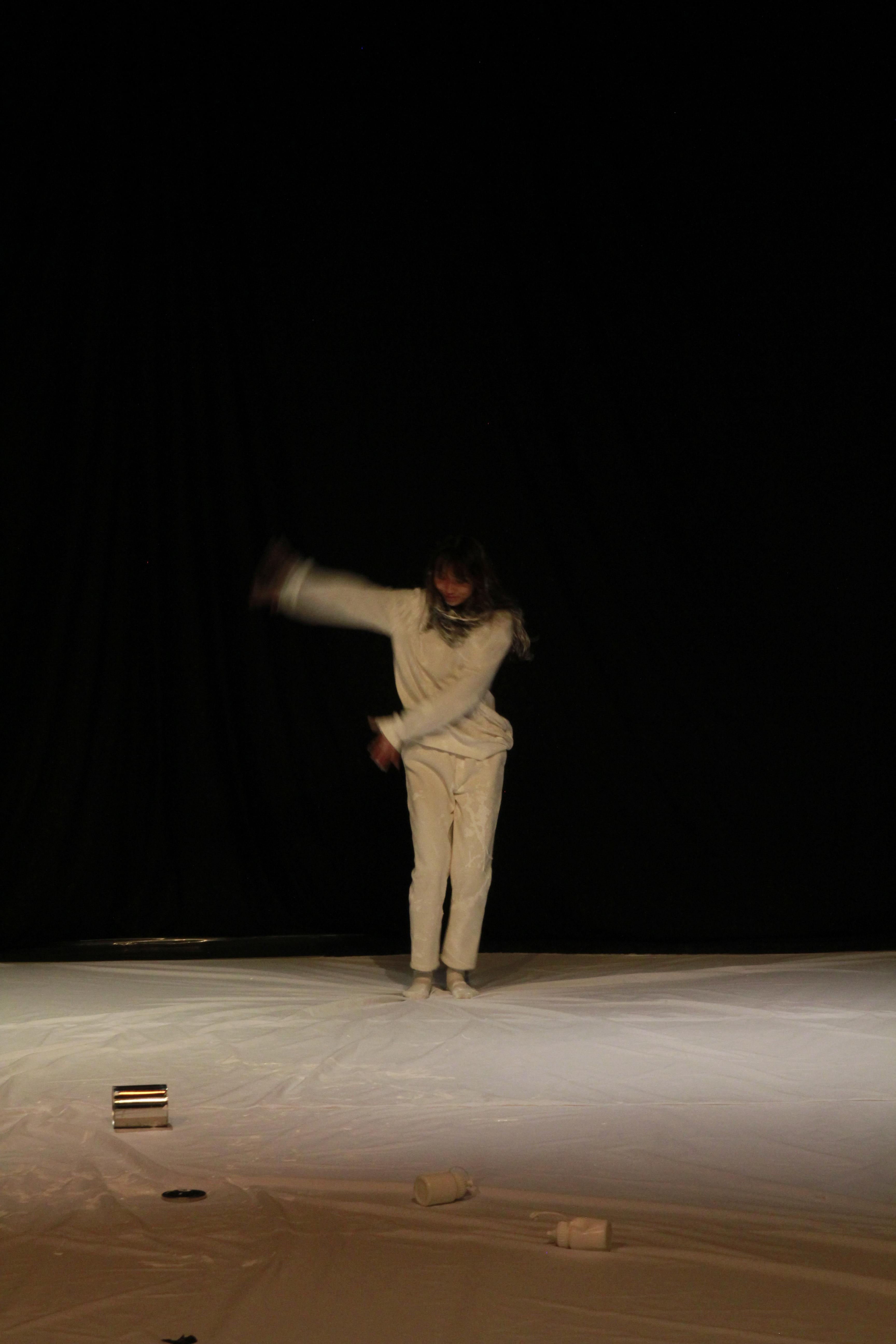 이 퍼포먼스에서 무용수는 여백의 캔버스 입장에 빙의하여 사물의 의지를 몸으로 투영한다. 나는 캔버스 위에 드로잉을 하는 대신 무용수의 몸에 직접 드로잉을 함으로써, 무용수와의 물리적 상호작용을 주고받는다. 이러한 시도는 캔버스라는 사물에 질감을 연출하는 기존 표현 방식에서 다른 접근으로, 캔버스-물감 관계의 주체성에 대한 새로운 표현 방식을 모색하며, 다른 존재가 만날 때 발생되는 다양한 조건들을 작업으로 담아보려는 시도이다.