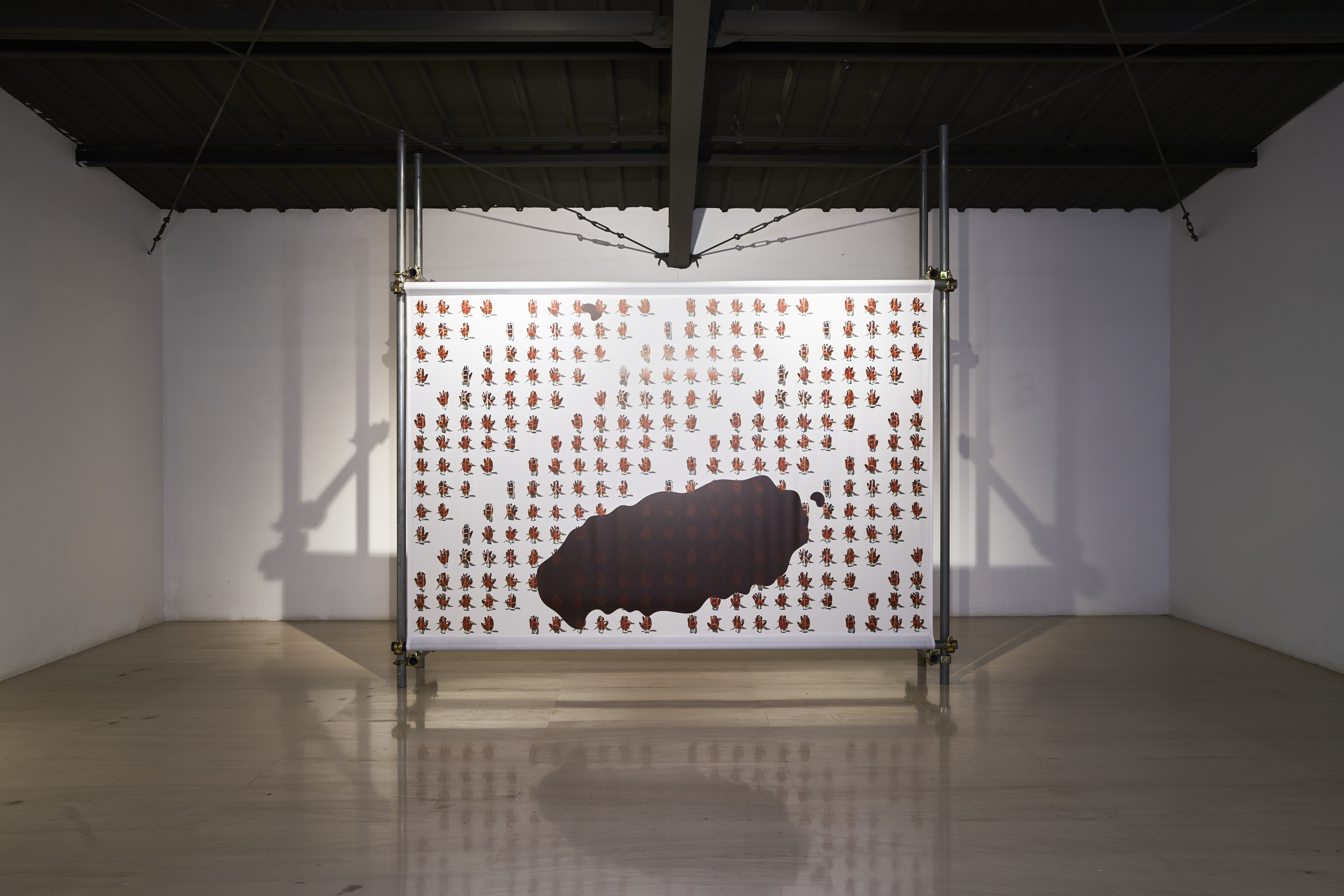 미화 용역으로 근무했던 과거의 내가 있다. 과거의 나는 빛이란 ‘저편의 빛’인 ‘어둠’이 존재하기에 역설적으로 가치를 얻는다는 사고에서, 동료들이 버린 장갑을 다리미로 녹여 <저편의 양>(2022), <563의 양>(2023) 등을 발표하였다.